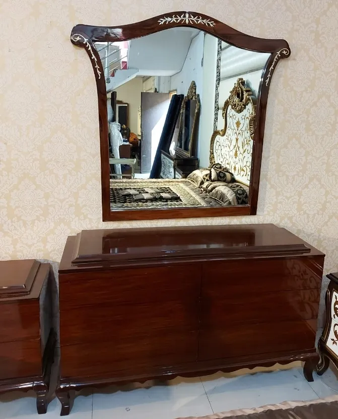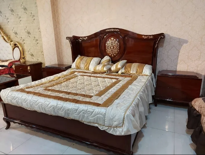 This stylish bedroom chiniot furniture design is perfect for those who want a bed that feels like a piece of art. The rich, dark walnut finish provides a beautiful contrast to the premium tufted upholstery, making it a standout wooden simple chiniot furniture choice for any luxury bedroom. While it carries the weight and prestige of traditional chiniot furniture, its smooth lines offer a more refined, simple chiniot furniture aesthetic that doesn’t feel outdated. It is a timeless investment that combines the best of Pakistani heritage with sophisticated modern living.