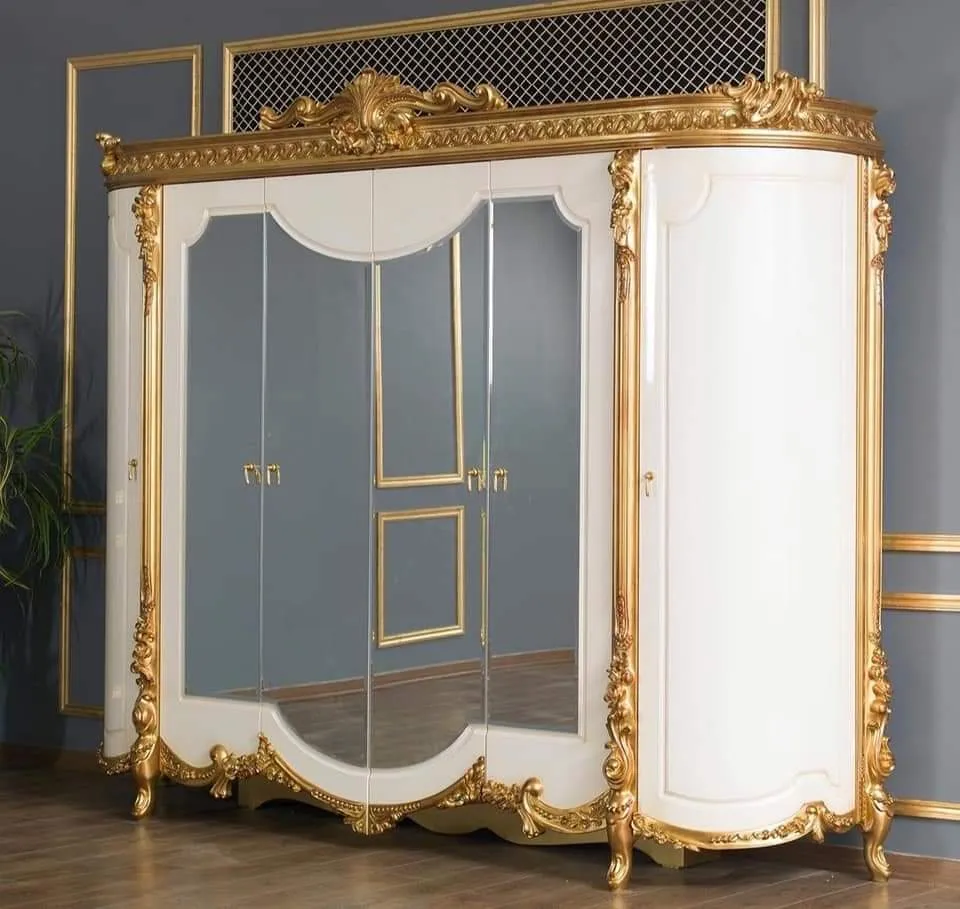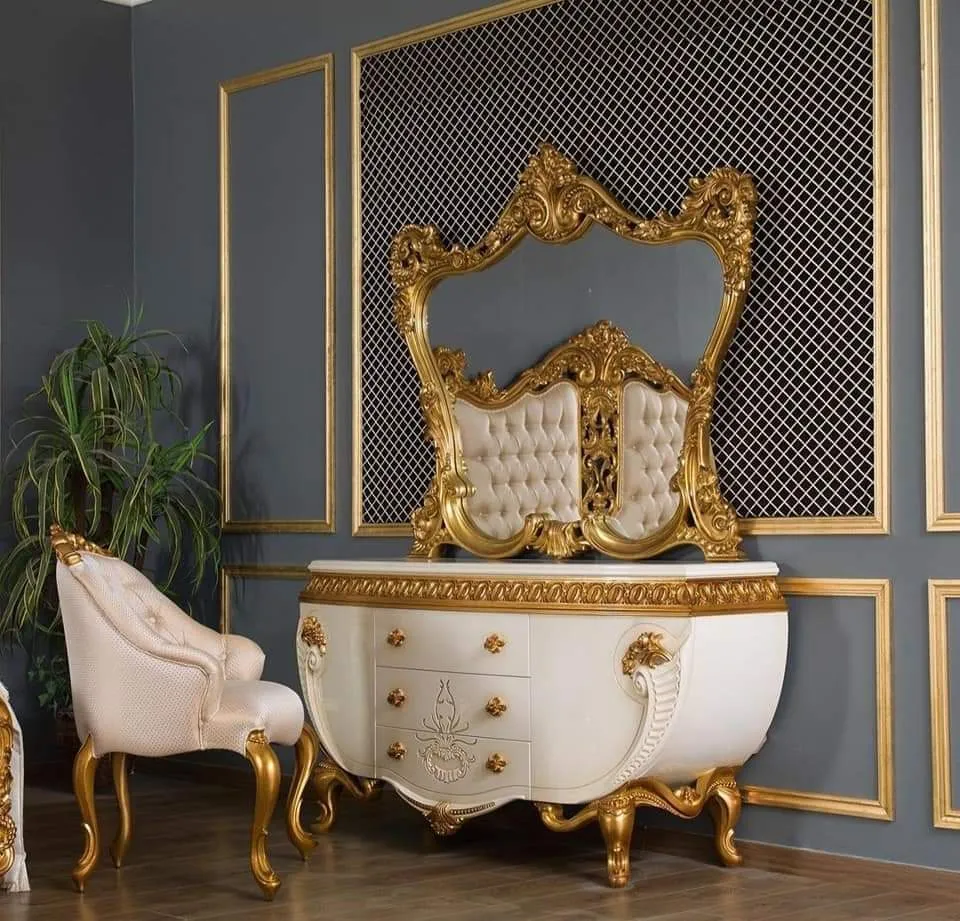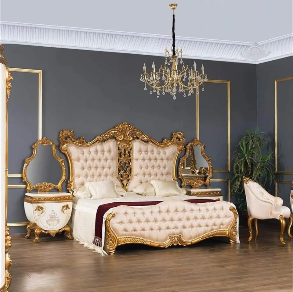 The exposed wooden accents are finished in a brilliant champagne gold deco, offering a stylish bedroom chiniot furniture design that catches the light beautifully. This set is designed for those who want the weight and presence of chiniot furniture but prefer the clean, linear aesthetics of Italian modernism. It is a standout wooden simple chiniot furniture choice for luxury apartments or renovated homes. Whether you are looking for simple chiniot furniture with a royal touch or a contemporary masterpiece, the CBD26 delivers the perfect combination of strength and style.