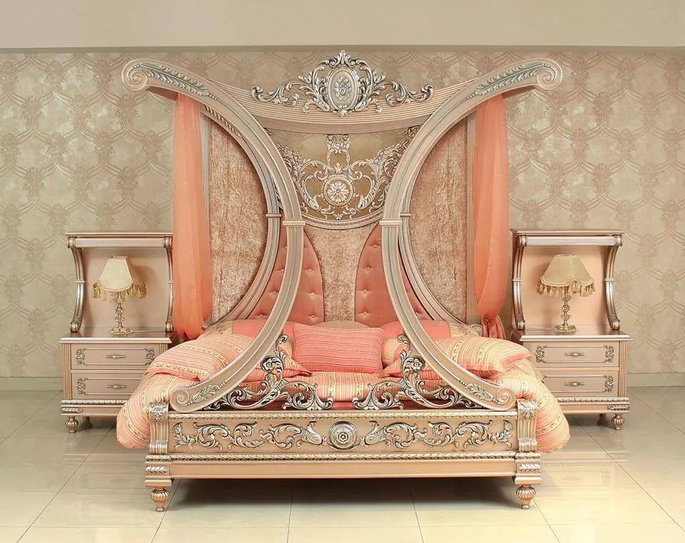 Experience the height of luxury with our Chinioti bed set design CBD27. This set is a magnificent example of how chiniot furniture design can seamlessly blend royal European aesthetics with local craftsmanship. The headboard features a high, arched silhouette adorned with deep, hand-carved floral patterns that highlight the artisan’s precision. Built using solid wood wooden simple chiniot furniture techniques, the frame is made of pure Sheesham wood, ensuring the heavy-duty stability that the chiniot furniture market is famous for.