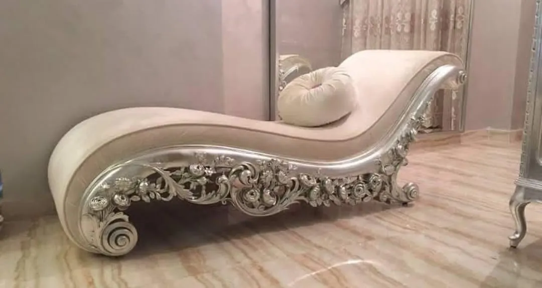 Chinioti Deewan Design DD6 aik behtareen shahi namoona hai jo Chiniot furniture market ki asli pehchan hai. Is deewan ko solid Sheesham wood se banaya gaya hai taake ye salon saal mazboot rahe. Iska silver leaf finish har barik design ko mazeed nukharta hai jo ise aik wooden simple chiniot furniture se barh kar aik shahi cheez banata hai. Iska curved backrest aur floral carving apke ghar ko aik alag hi shaan deti hai.