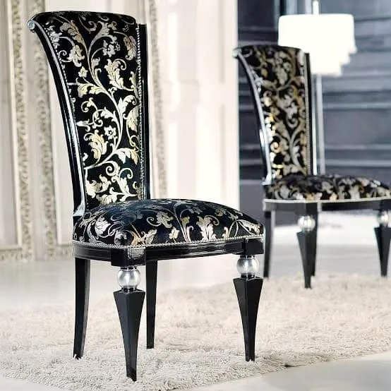 If you are looking to create a shahi atmosphere in your home, this sofa-style comfortable dining chair set with its high-back support is the perfect choice. The chairs are upholstered in premium fabric and feature the signature “Taj” carving that is a hallmark of stylish bedroom chiniot furniture design, now adapted for the dining room. Each piece is finished in a rich antique gold deco that catches the light beautifully, highlighting the solid wood craftsmanship. Whether for formal family gatherings or hosting special guests, this Chiniot furniture design offers unparalleled elegance and a truly regal dining experience.