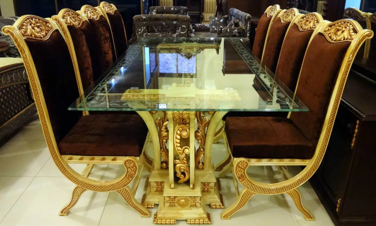 Chinioti Dining Table Set DTS2 – Artisan Crafted Floral Golden Suite
