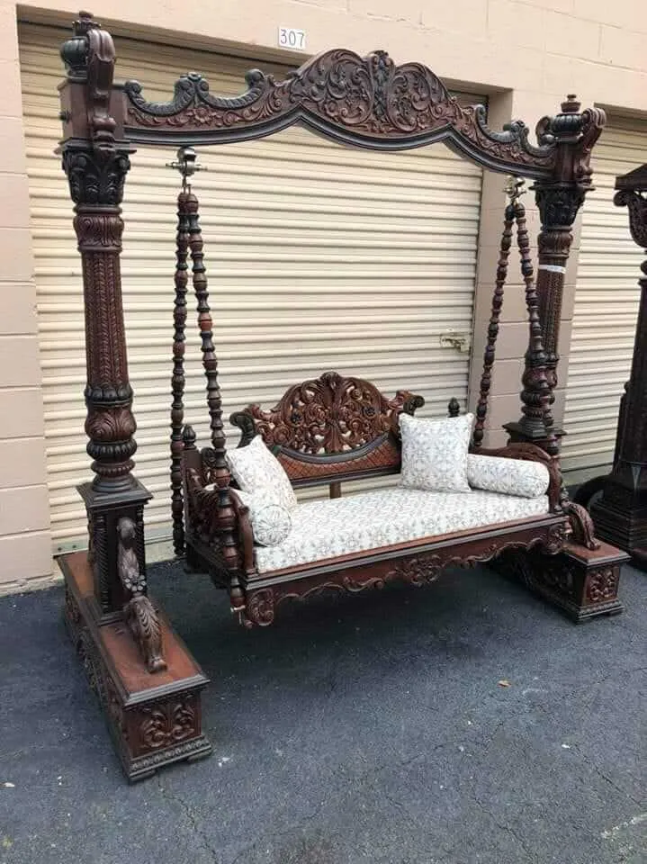 The Chinioti Jhula Design JD4 is a beautiful representation of the craftsmanship found in the Chiniot furniture market. This indoor swing is masterfully created from high-quality seasoned Sheesham wood, making it a durable and reliable addition to your home. The pillars and top beam feature detailed floral carvings and the iconic “Taj” crown, which are hallmarks of authentic Chiniot furniture design. Every curve is hand-finished to ensure a smooth, royal look.